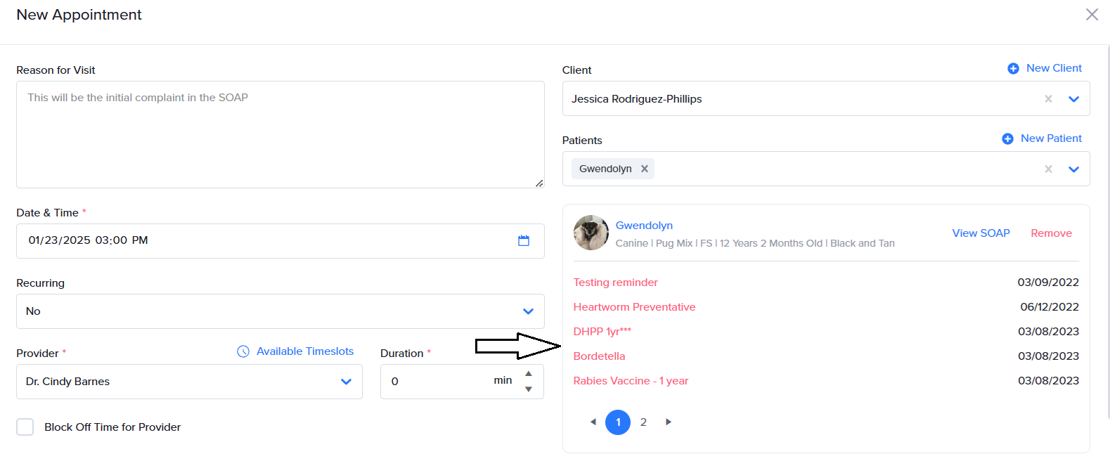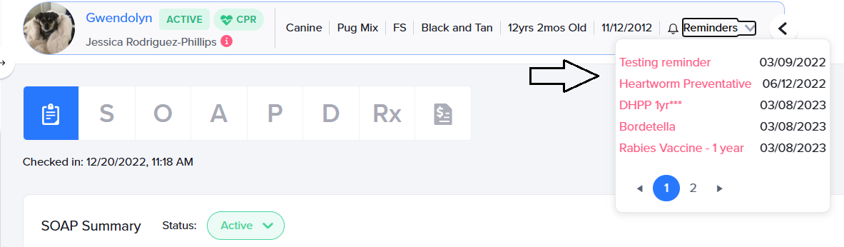 Shepherd eliminates this hassle with patient service reminders that live right in your SOAP. You don’t even have to toggle to another page! At-a-glance visibility ensures that crucial health exams, vaccines, and services are not missed – which equals improved outcomes and better medicine. You’ll see upcoming patient service reminders when creating or updating an appointment or boarding reservation, as well as within the SOAP signalment header.