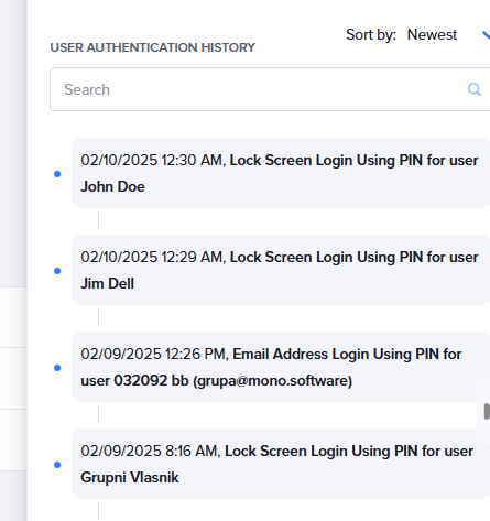 - Login details (whether an email address or a PIN via the lock screen was used)
